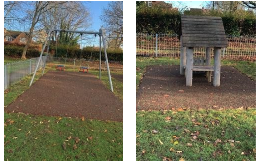 The old rubber matting was starting to disintegrate and sink into the grass. The new surfacing will result in  less mud underfoot in the winter and also improve safety in case of a fall from the equipment.  he surfacing is sustainable as it’s made from recycled rubber and will have a longer life than the previous surfacing.