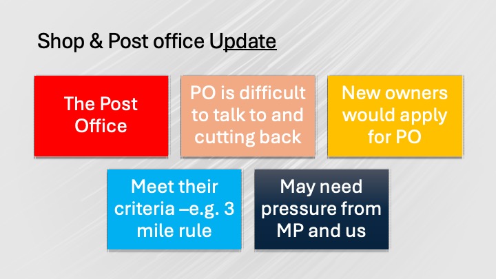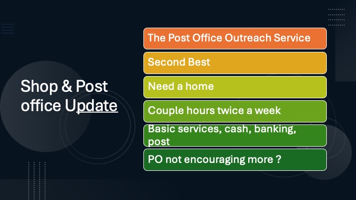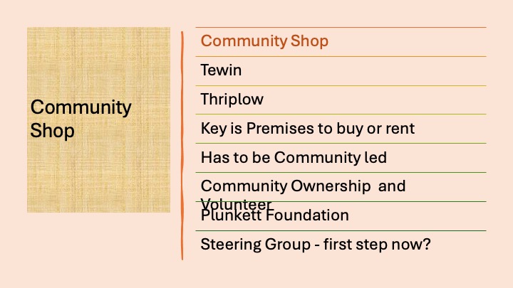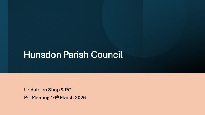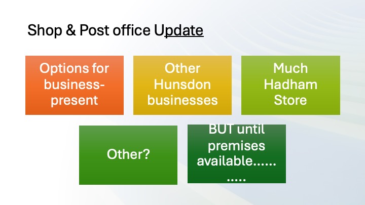 At the Hunsdon Parish Council meeting on March 16, 2026, a presentation was given regarding the future of the Hunsdon Shop and Post Office